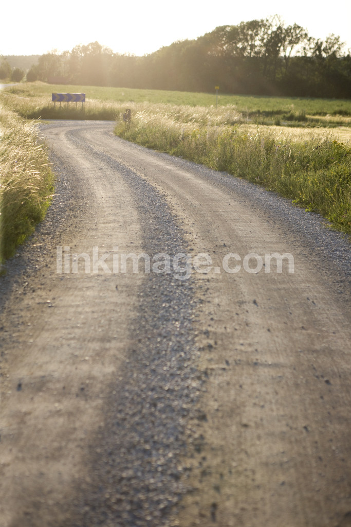 - sun, evening, gravel road, turn, narrow, road, summer, trip, backlight