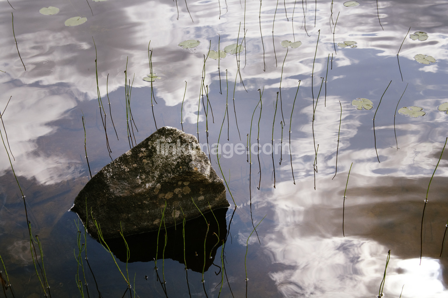 - nature, water, lake, waterlilies, reed, stone, surface, reflection, mirror, sky, peaceful, quiet