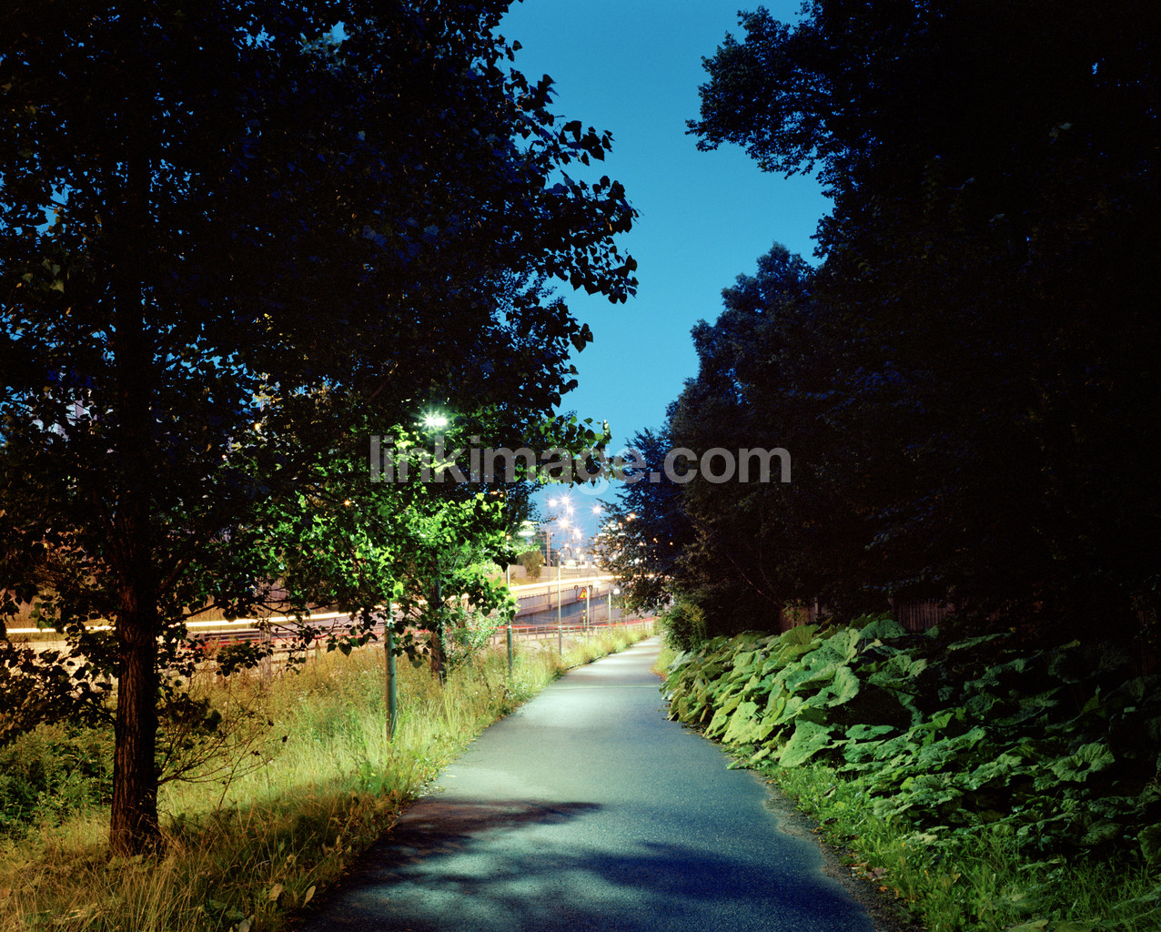 - pedestrian, bicycle path, asphalt, walk, road, city, suburb, urban, greenery, plants, trench, park, green, forward, direction, soon, cycling, go, fate, alone, night, evening