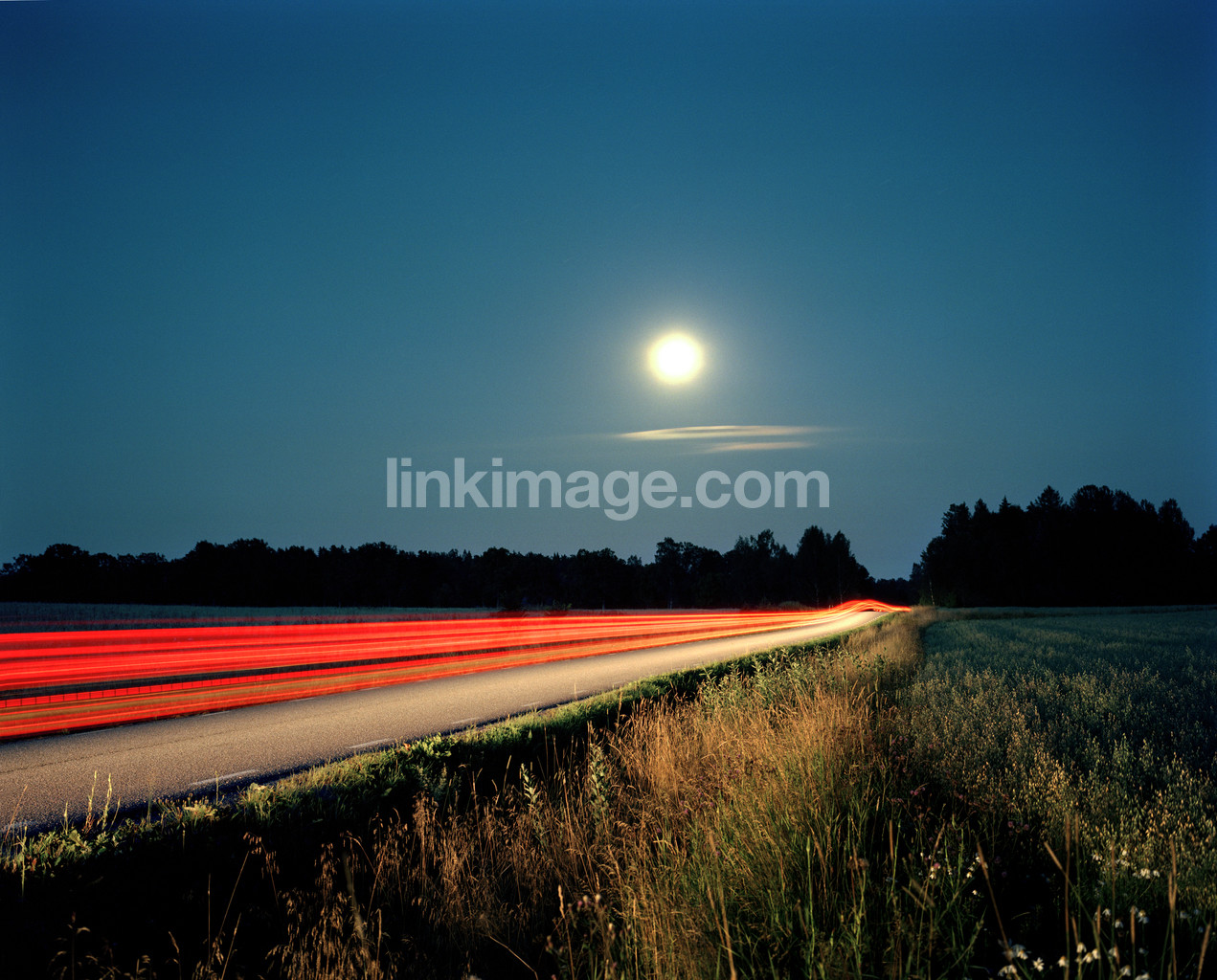 - road, traffic, car, brake, speed, time, light, night, evening, summer, sweden, rural, country, go, home, away, go, continued, stress, trench, safe, moon, full moon, august