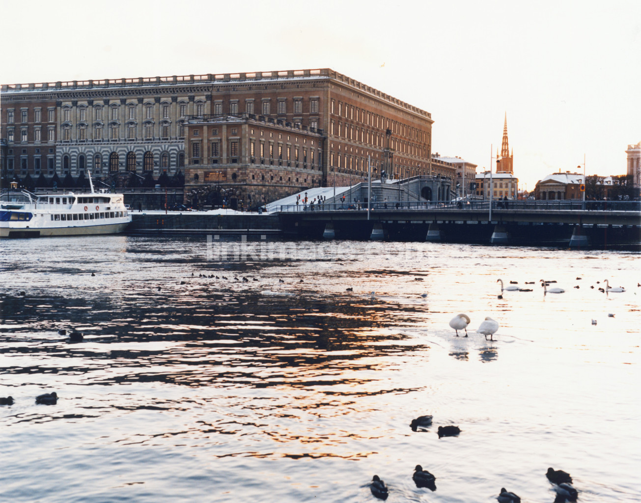 royal, castle, stockholm, building, water, birds, swans, swan, capital, city, boat, bk999