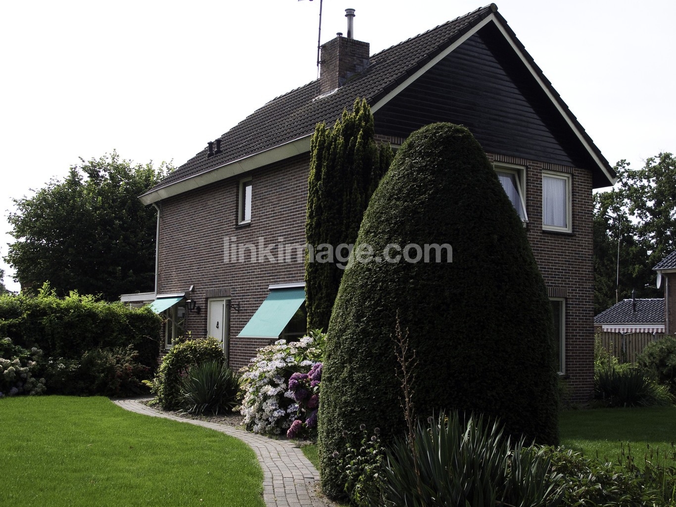 - house, occupiers, villa, brick villa, brick, garden, direction, garden time, bush, clipped, form, lawn, home