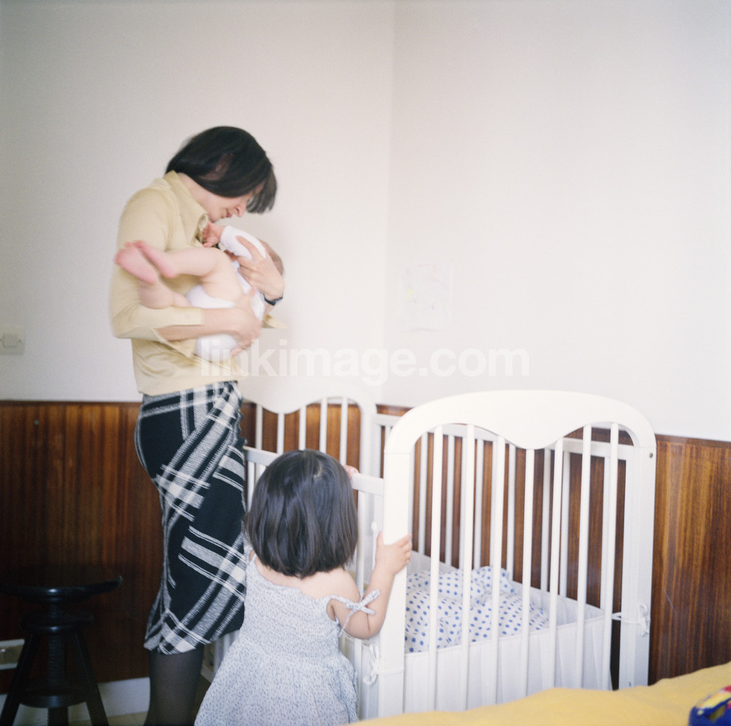 infant, female, mother, baby, consolation, siblings, sister, crib, nursery, wear, family