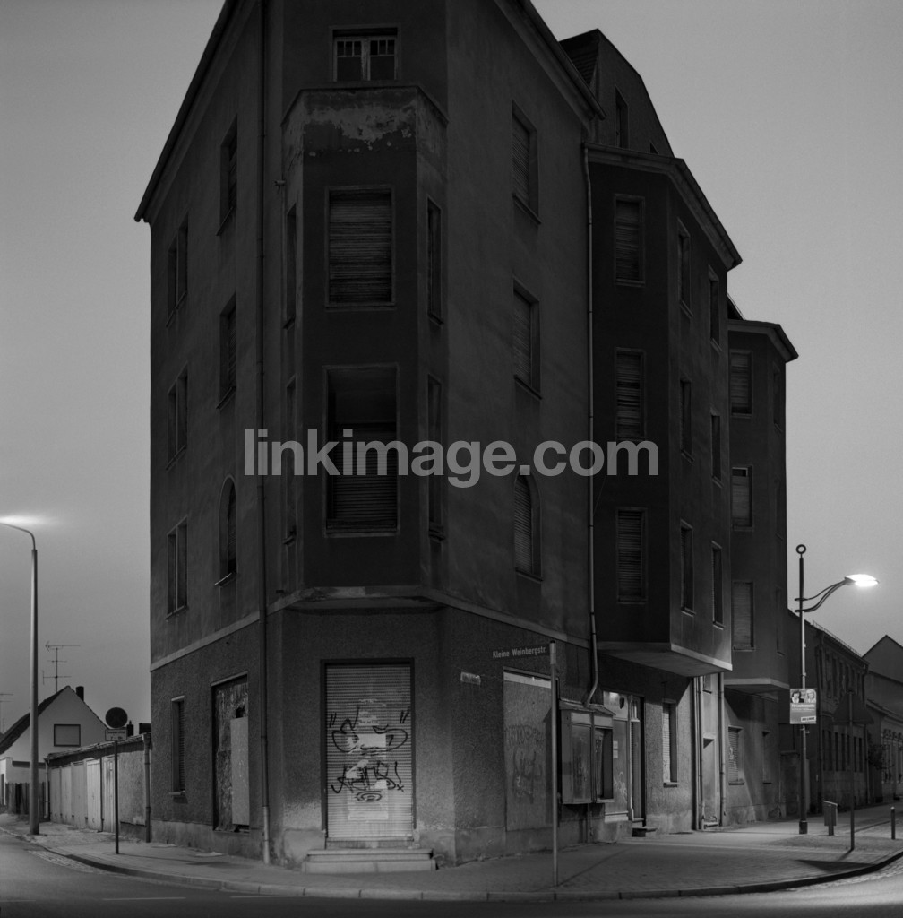 - house, window, architecture, shadow, street, pavement, dusk, fate, corner, streetlight, closed