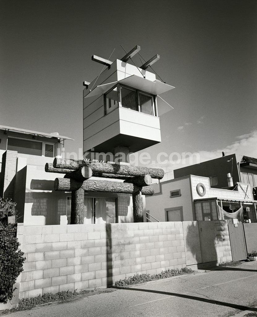 - architecture, house, frank, gehry, lifeguard, architect, wall, pavement, sky