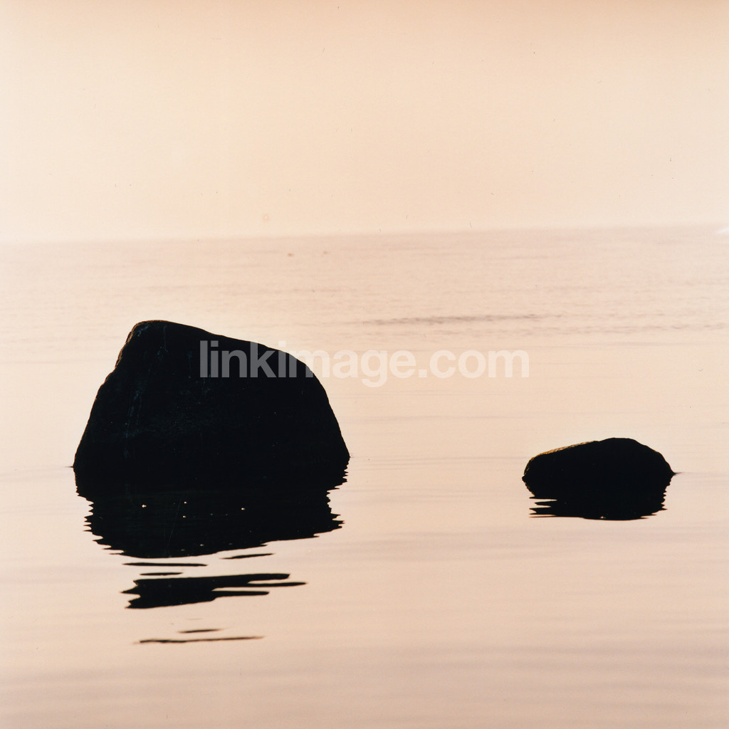 stone, stones, water, lake, ocean, sea, sunset, dusk, dawn, horizon, sky, bk1035