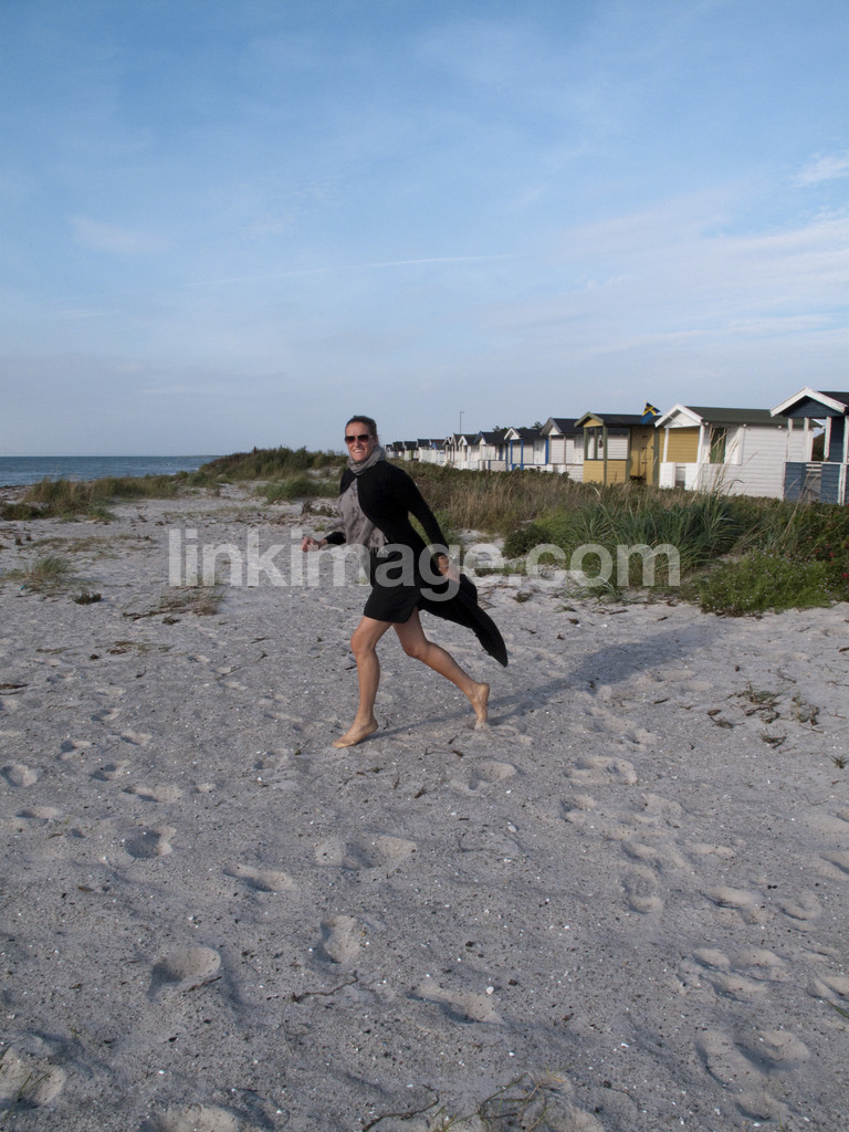 - female, run, shore, summer, wind, footprints, cottages, homes, sea