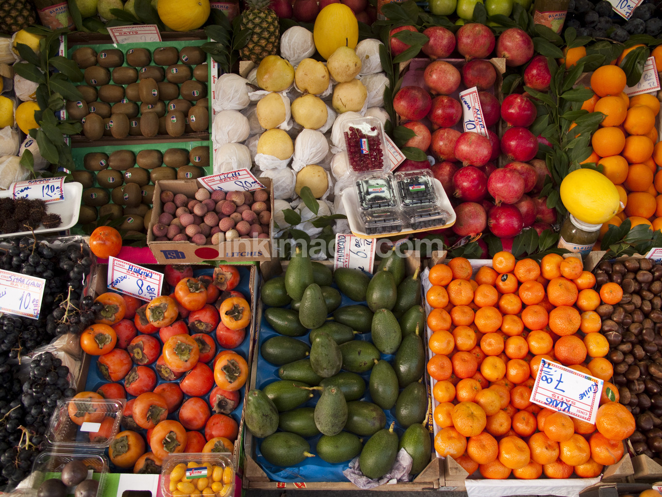 - market, fruits, berry, colorful, exotic, sharon fruit, kiwi, pineapple, melon, pomegranate, grapes
