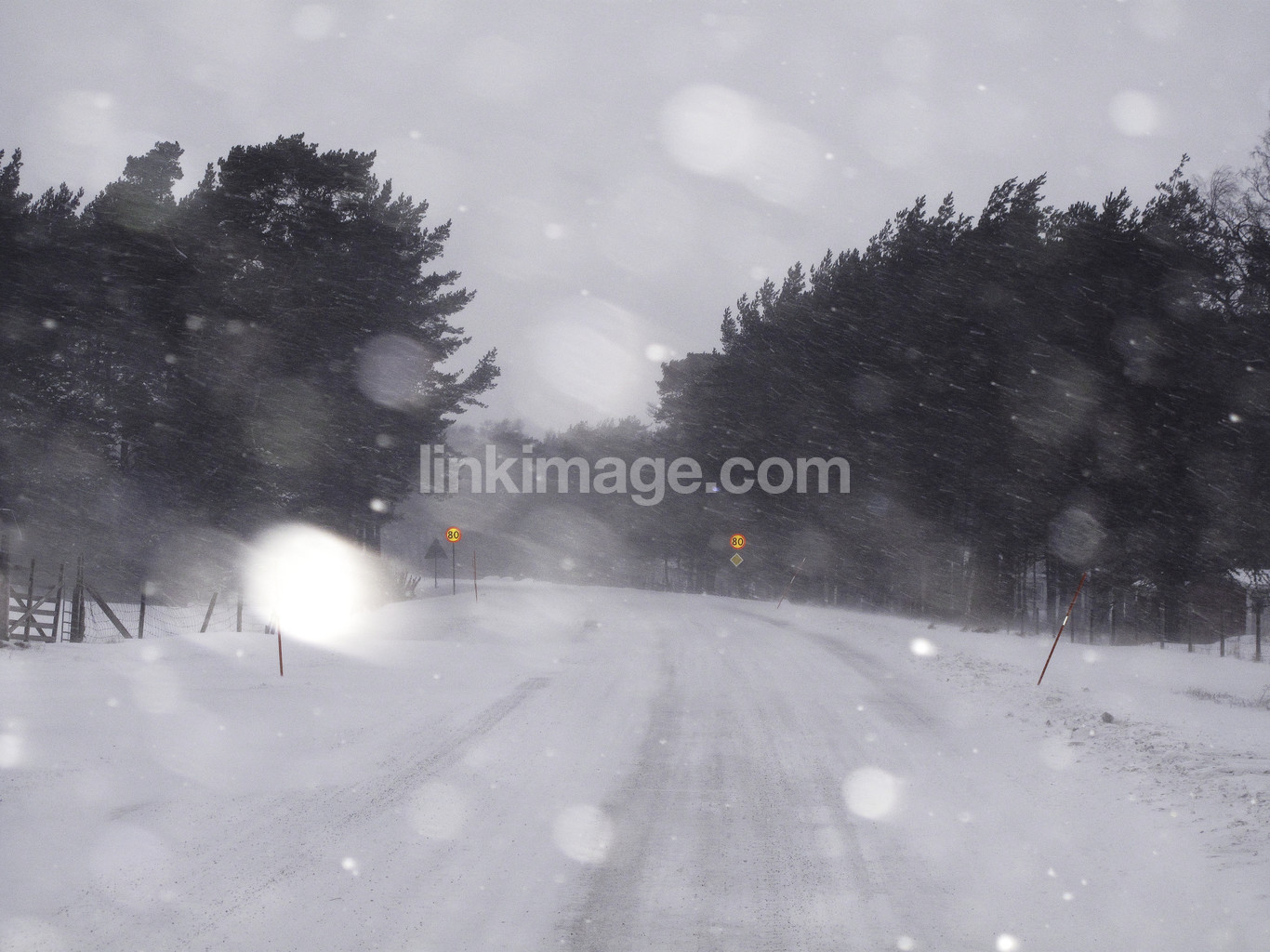 - road, traffic, road sign, speed limit, figure, traffic sign, spot, forest, tree, snow, snowstorms, snowing, winter, weather, conditions, content