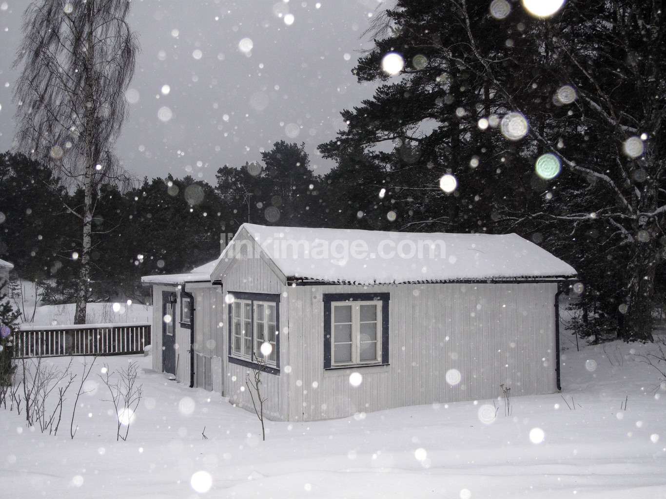 - cottage, summerhouse, winter, snow, snowing, weather, house, forest, tree, snowflakes, fate