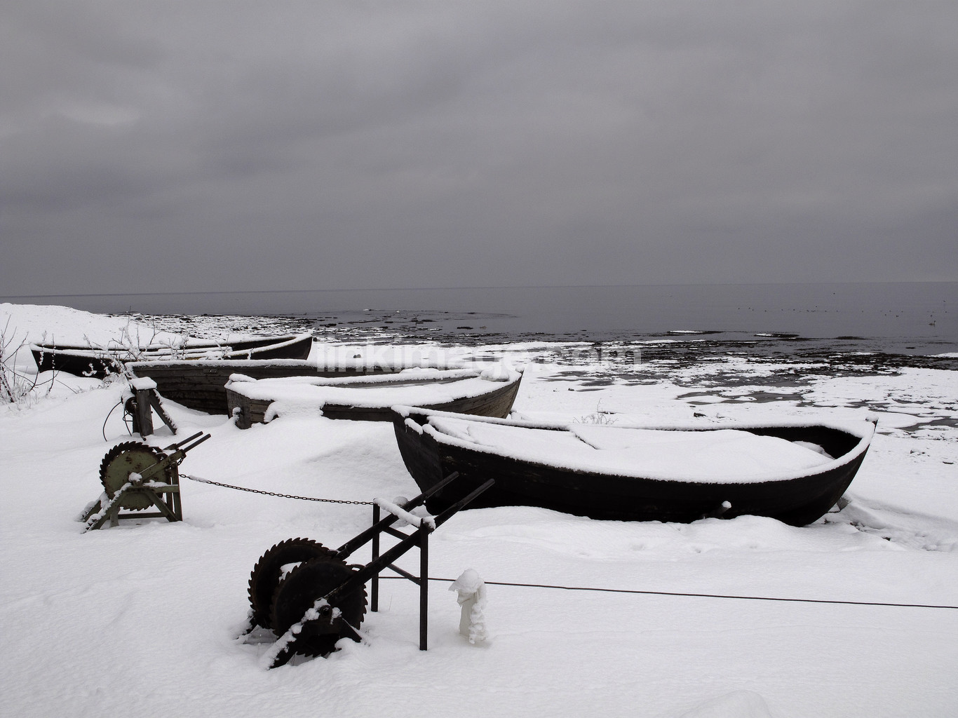 fishing village, fishing, boats, spot, winter, snow, water, sea, rest, snowed, coast, shore