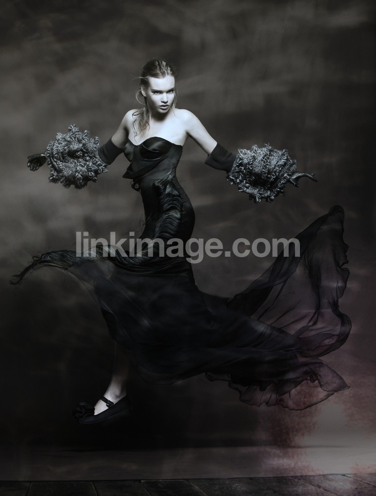 - girl, jump, black, dress, yarn, gloves, knitwear, crocheted, fashion