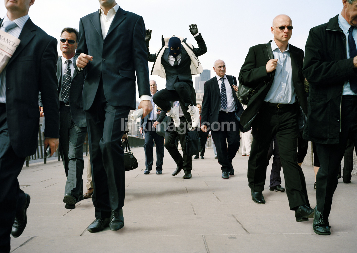 - men, guys, guys, worker, costume, on, road, office, neat, street, jump, fly, mask, my, in, sunglasses, march, walk, time