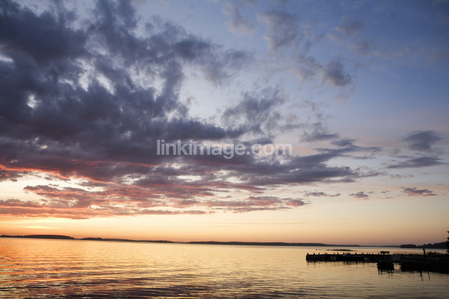 sunset, evening, archipelago, sky, water, bridge, dusk, idyll, view, pink, cloud, horizon