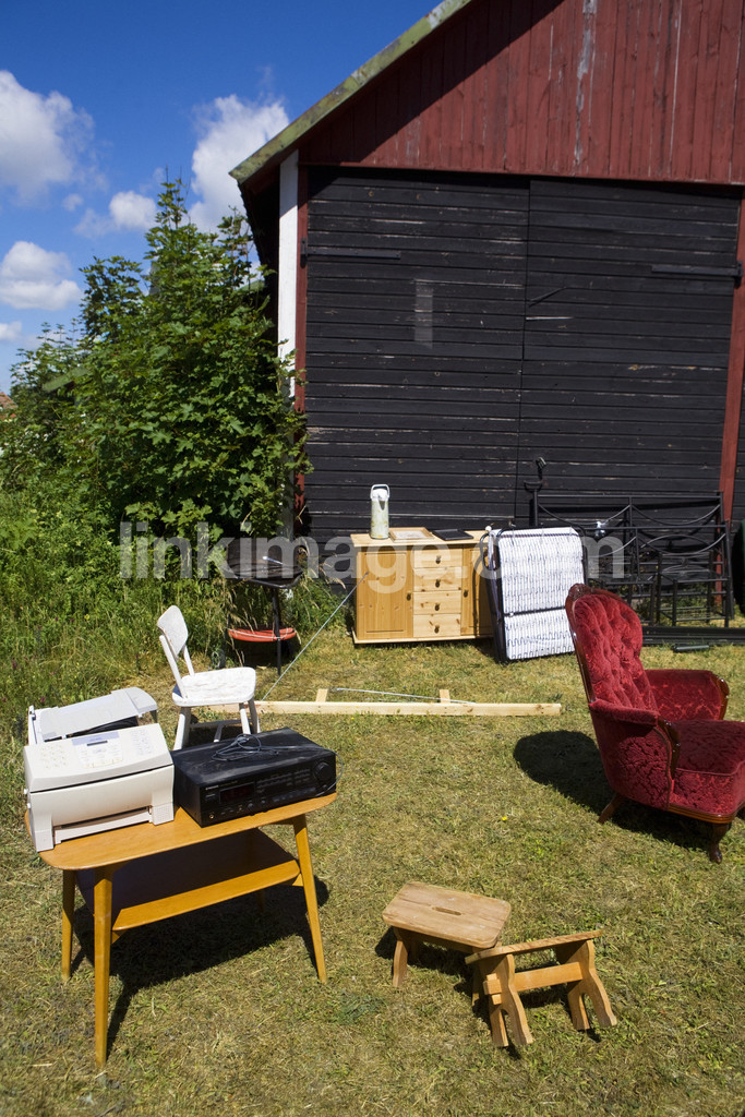- furniture, summer, flea market, sales, outdoor, armchair, trade, old, barn, computer, music, chair, stool, second, hand, table, machine, technology, rural