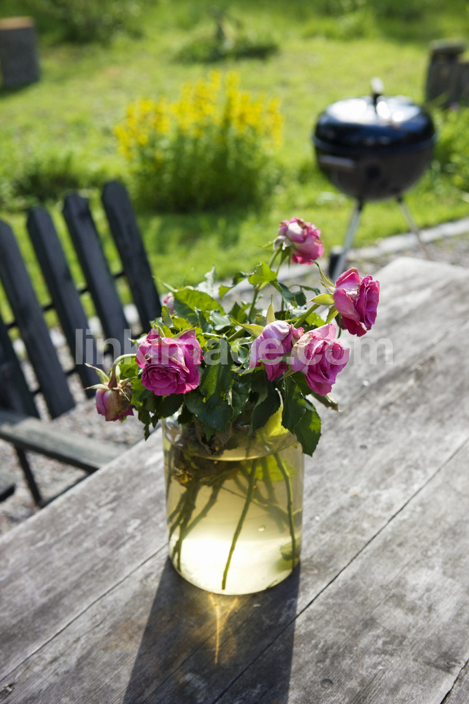 roses, vase, out, table, summer, wilted, old, garden, faded, beautiful, water, flower, pink, flowers