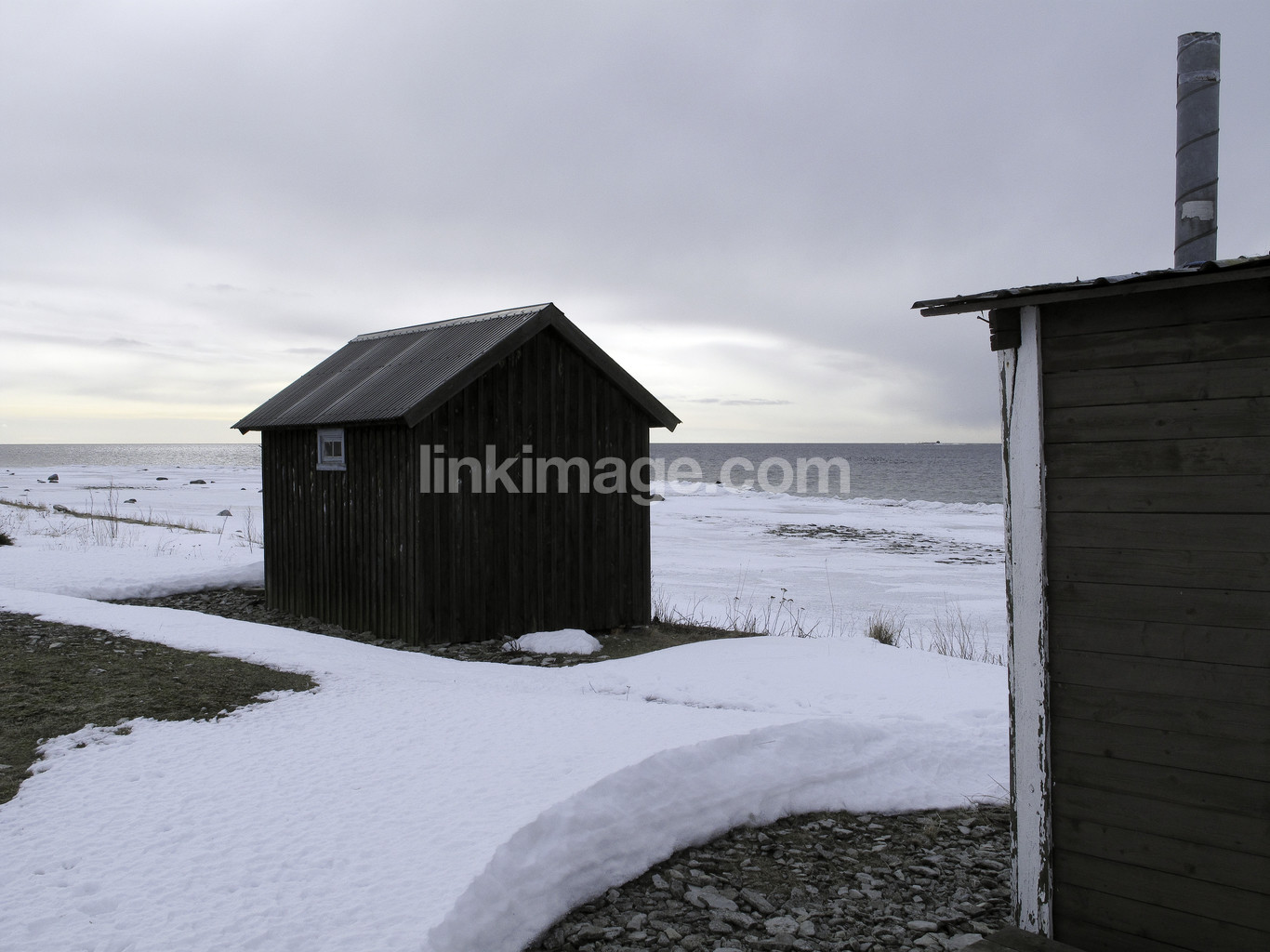 - winter, spring, late winter, snow, snow melting, bod, boathouse, fisherman, leisure, holiday, sea, view, spot, architecture, light, cottage
