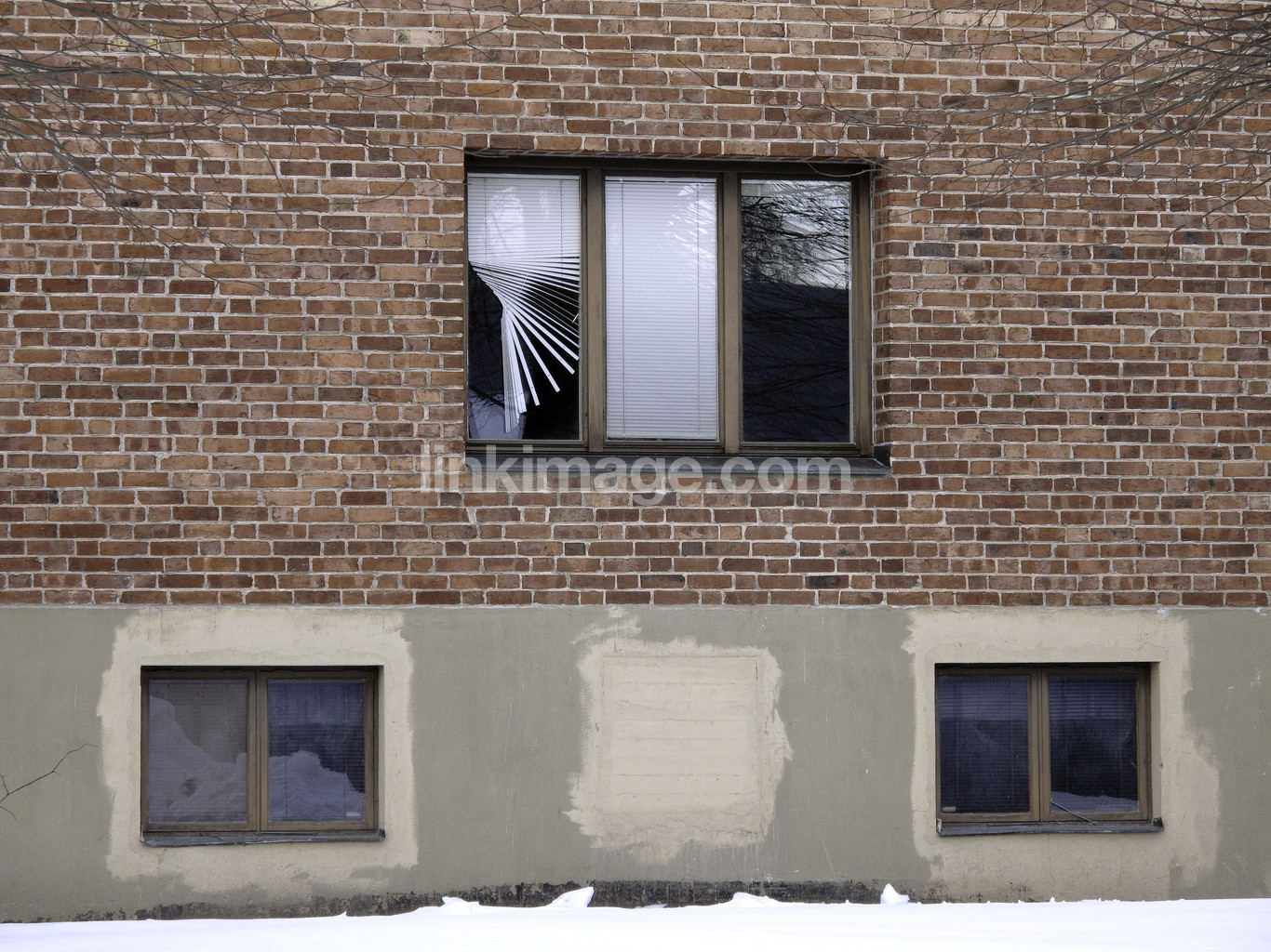 - house, apartment building, housing, brick, brick house, window, blinds, broken, form, graphic, three, local, office, rent, architecture, twisted, straggly, reflection