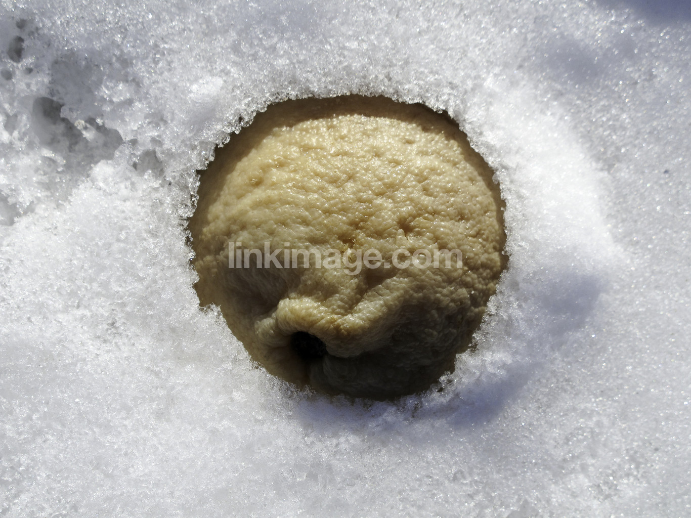 - track, orange, snow, spring, thaw, snow melting, fruits, winter, symbol, form, skin, round, pale, knobbly, umbilical