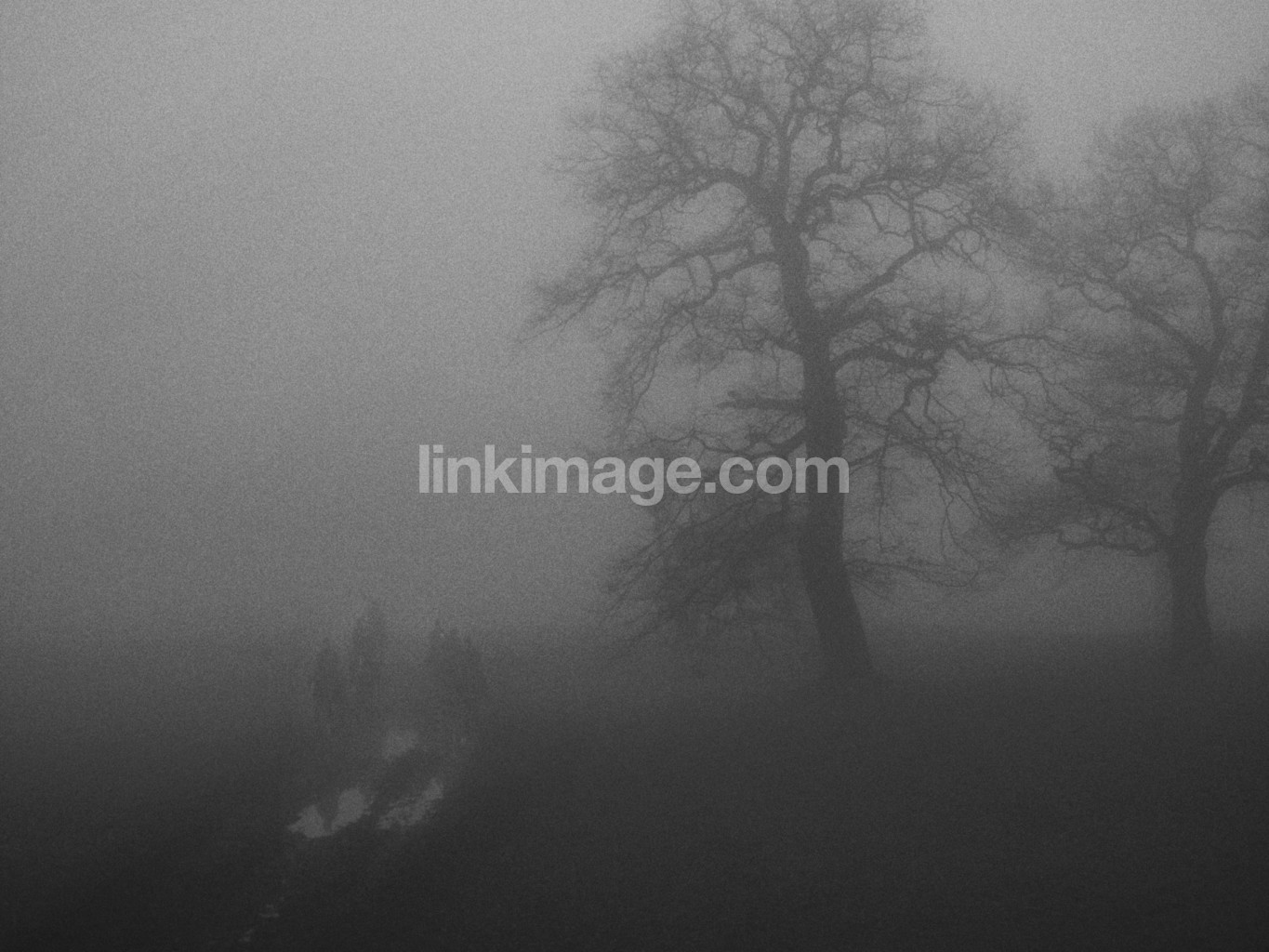 - fog, haze, mille yard, milles, tree, bare, fall, winter, mystery, sculptures, figures