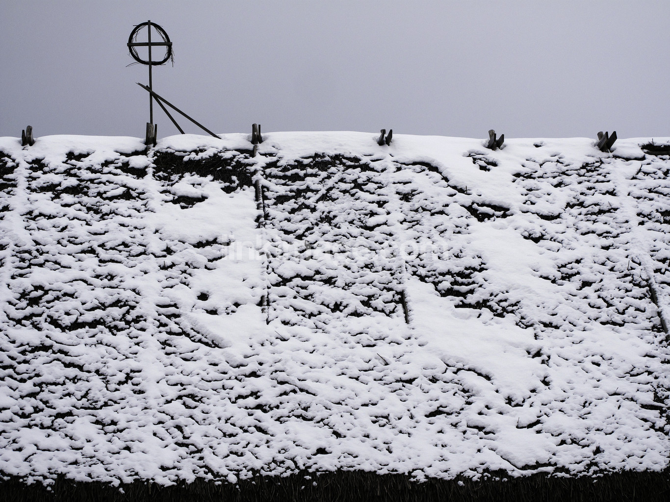 - barn, snow, winter, graphic, ceiling, pattern, symbol, cross, circle, fresh snow, lightning rod, ridge