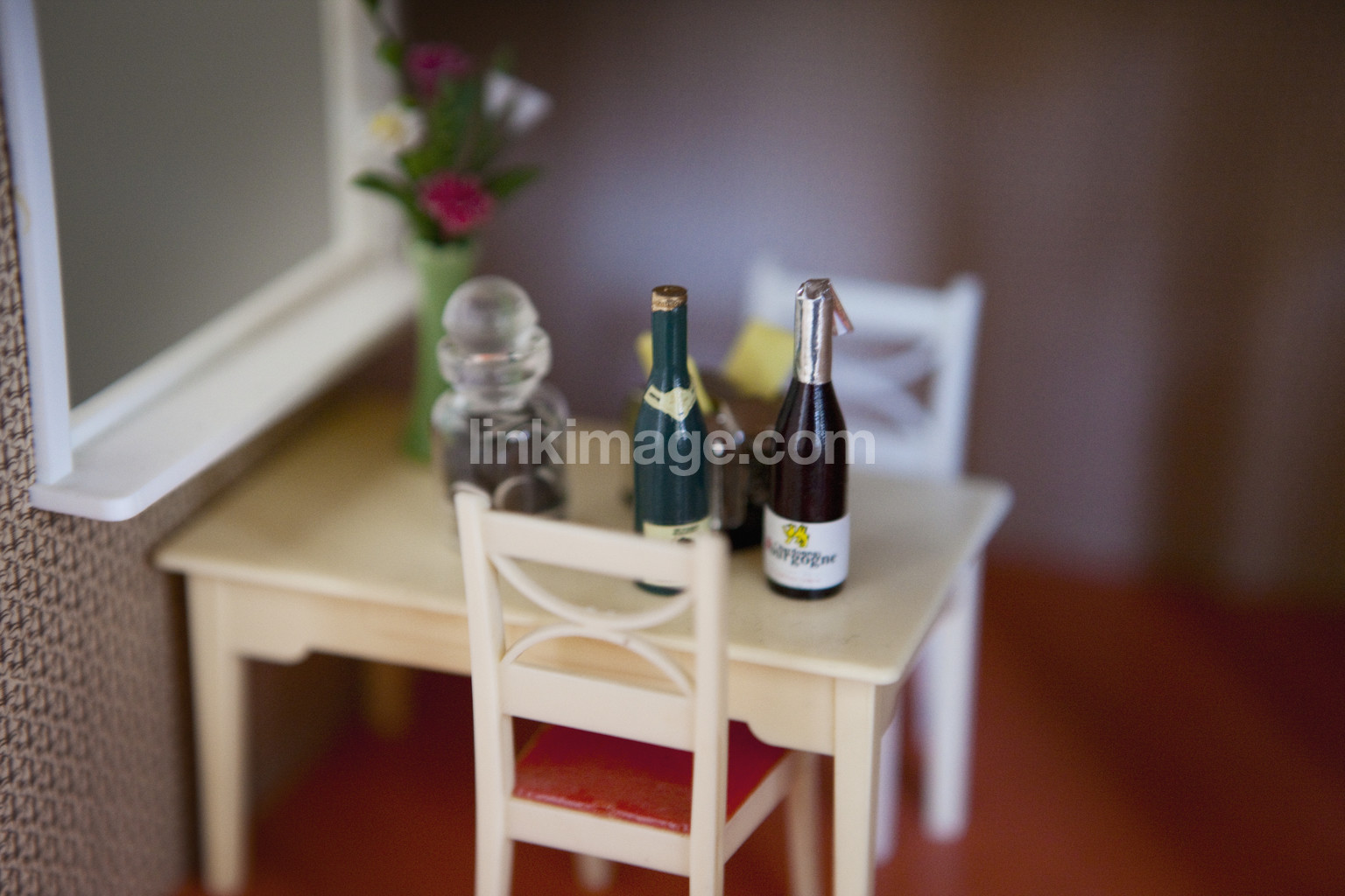 kitchen, table, chairs, small, campagne, drinking, details, miniature, dollhouse, toy, ornament, wine, kikskåp, viewer