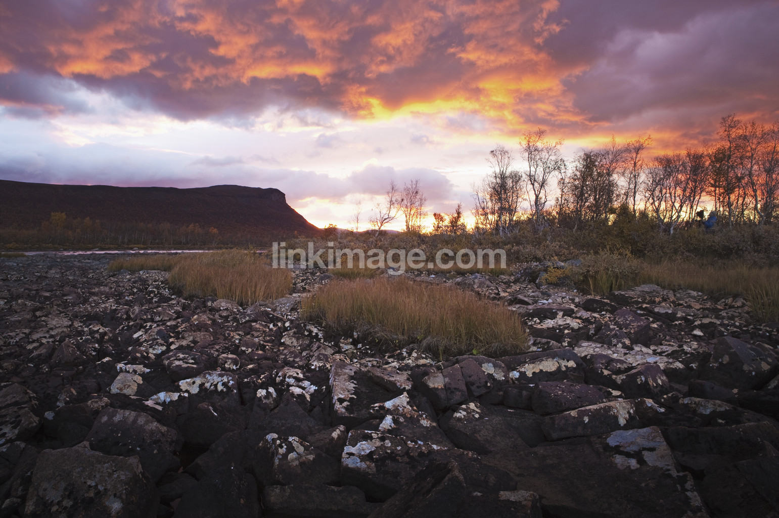 sky, pink, orange, light, magic, sunset, dusk, burns, stone, rock, grass, nature, still, tree, colored