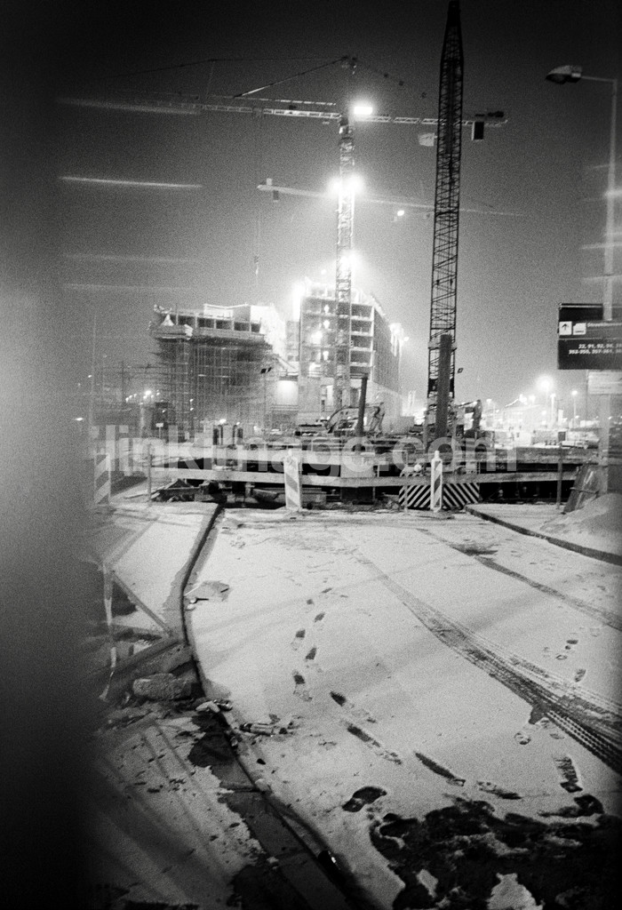 - build, construction, building, house, based, derricks, platforms, large, expanering, exploitation, snow, winter, light, evening, night, footprints