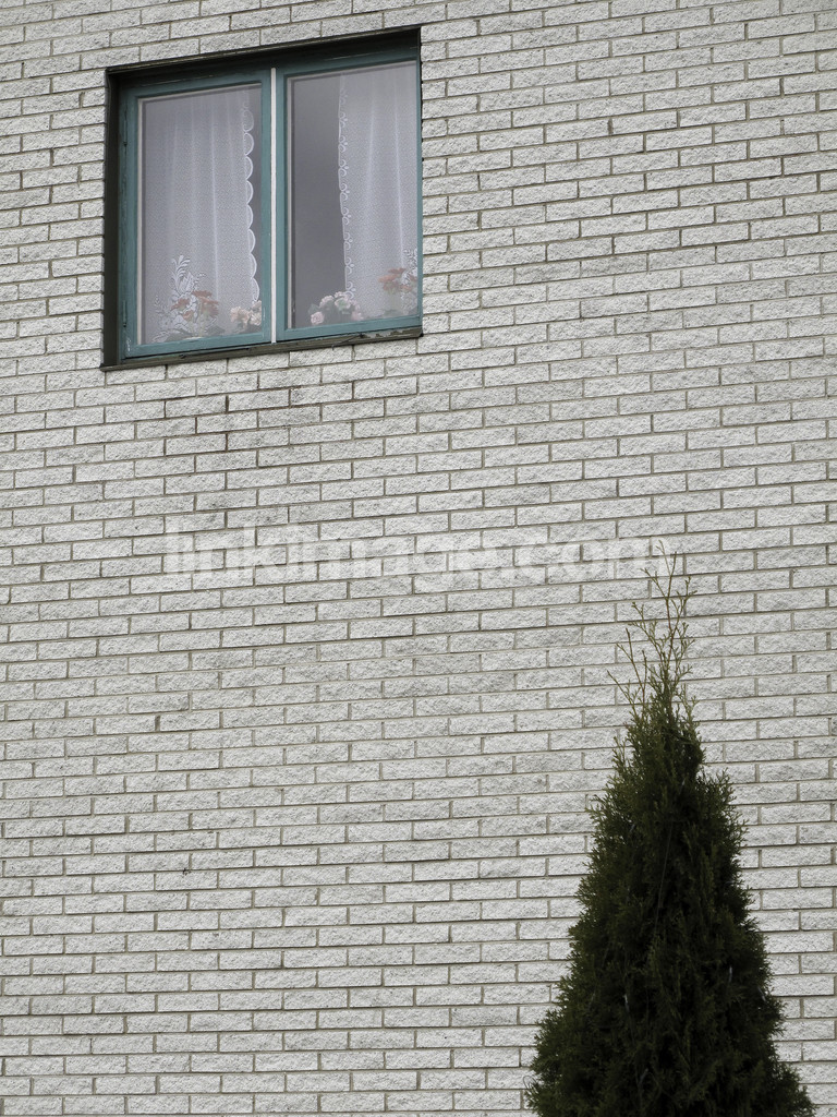 house, villa, mexitegel, brick, window, form, bush, curtains, flowers, houseplant, tip, garden, graphic