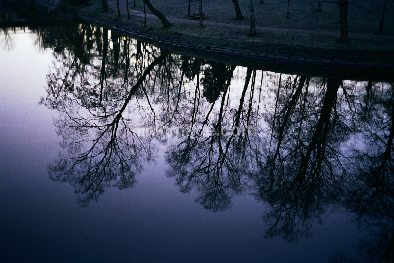 - tree, reflection, evening, light, tree mirroring, on, evening light, water
