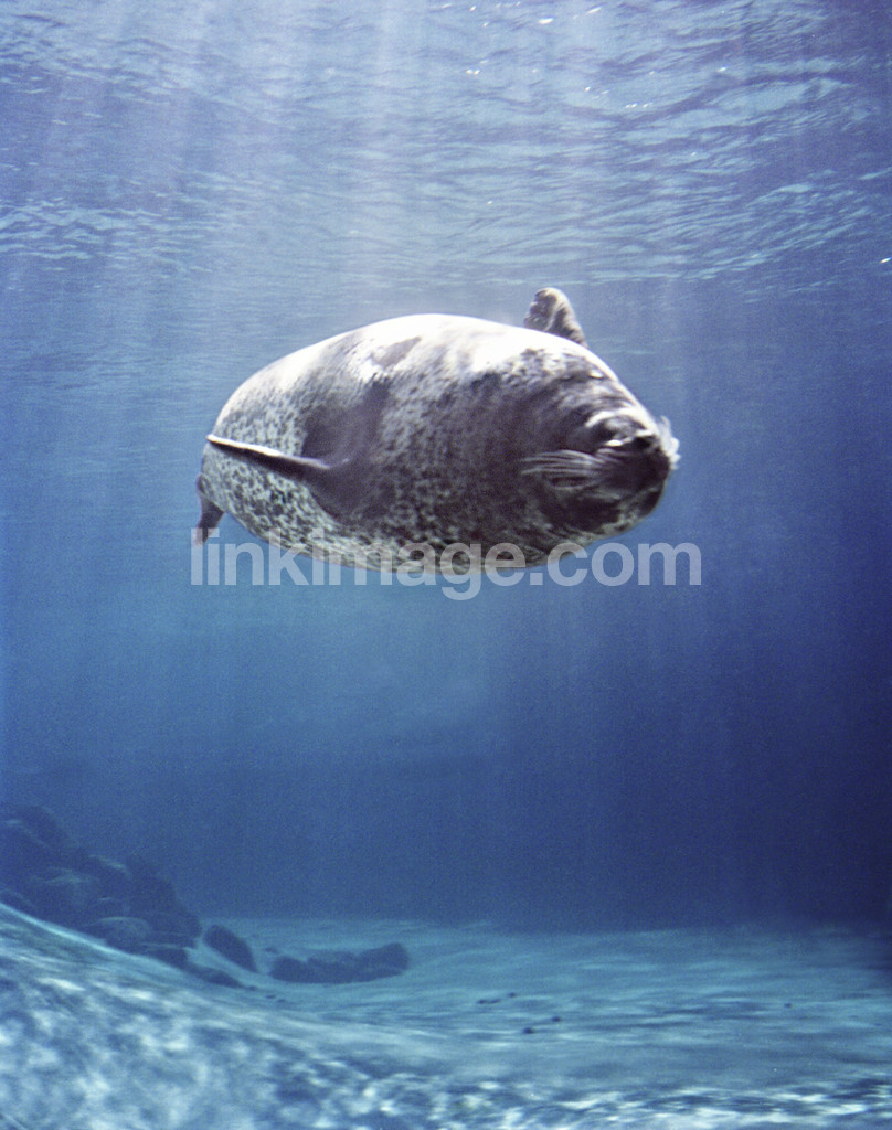 animals, seal, water animals, water, depth, surface, sunbeams, stone, sand, reflections, blue, mammal, up, down, fins, whisker, spotted, swim, float, slip, sun