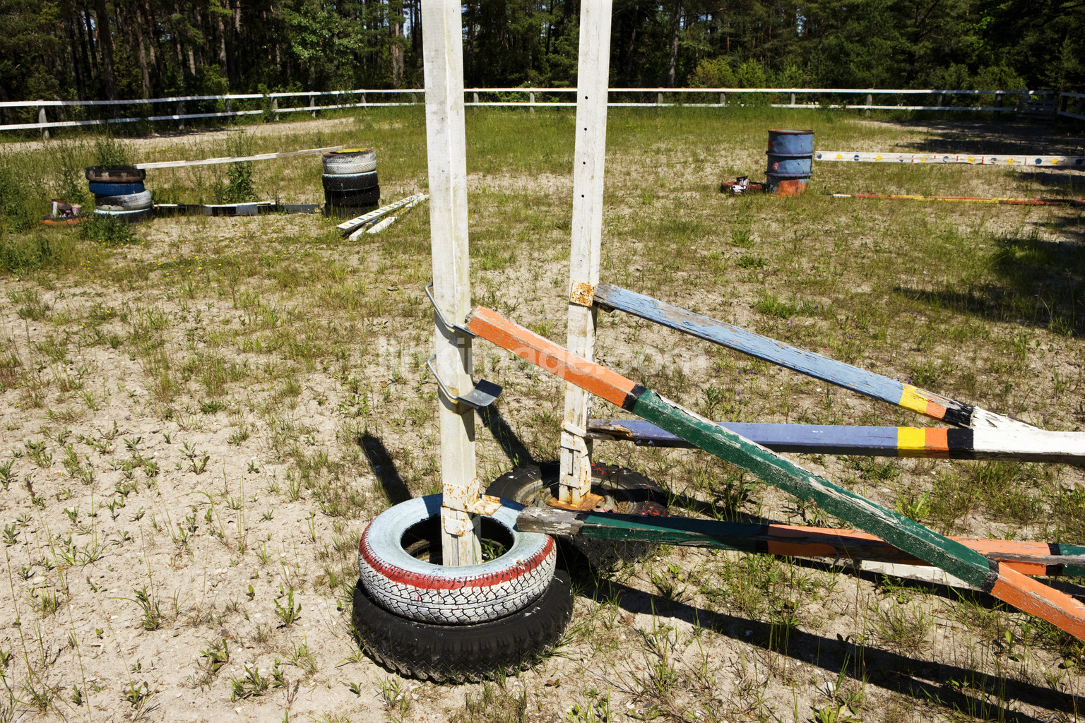 colors, sports, barrier, horse, pasture, abandoned, old, worn, play, animals, compete
