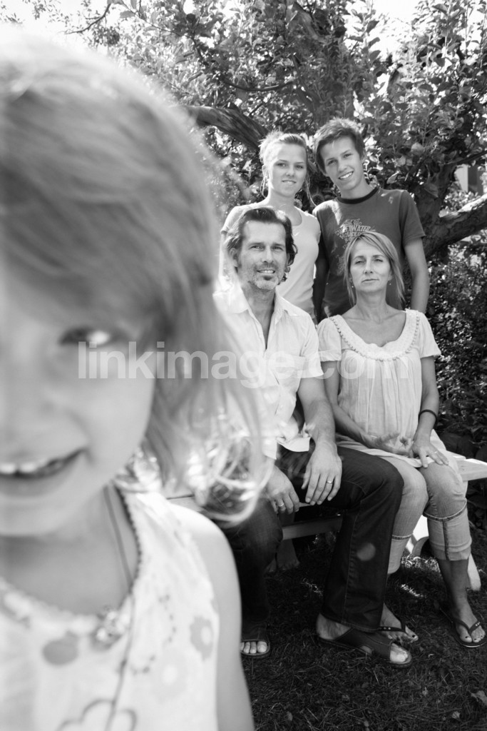 - family, children, adults, group, garden, summer, portrait, female, male, girl, daughter, son, mother, dad
