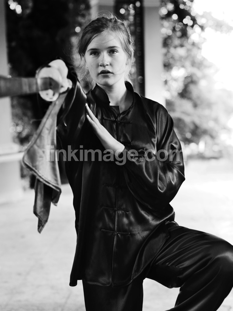 martial arts, girl, female, braid, wushu, king, fu, sword, arm, concentration, pavilion, uniform, costume, asian, style, hobby, training, sports, practice, indicator