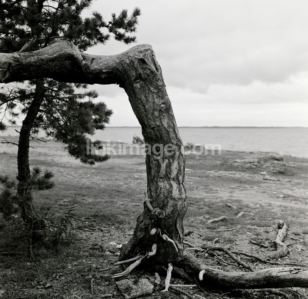 tree, pine, bark, bent, twisted, grumpy, direction, old, unknown, view, spot, sea, coast, water