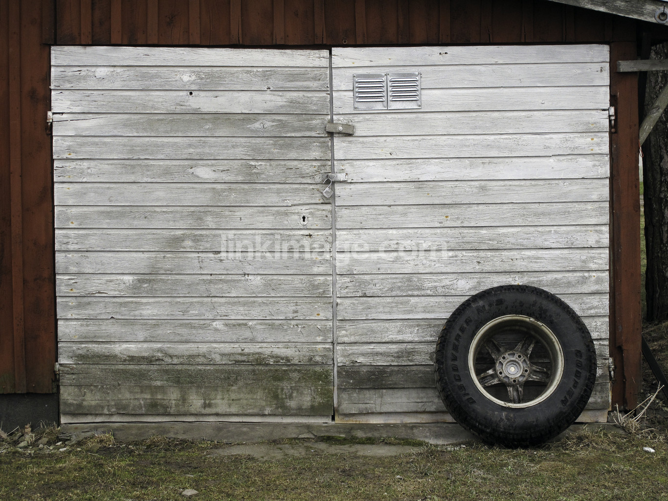 - car, backhoe, deck, tractor tires, tires, garage, country, country built, an, wheel