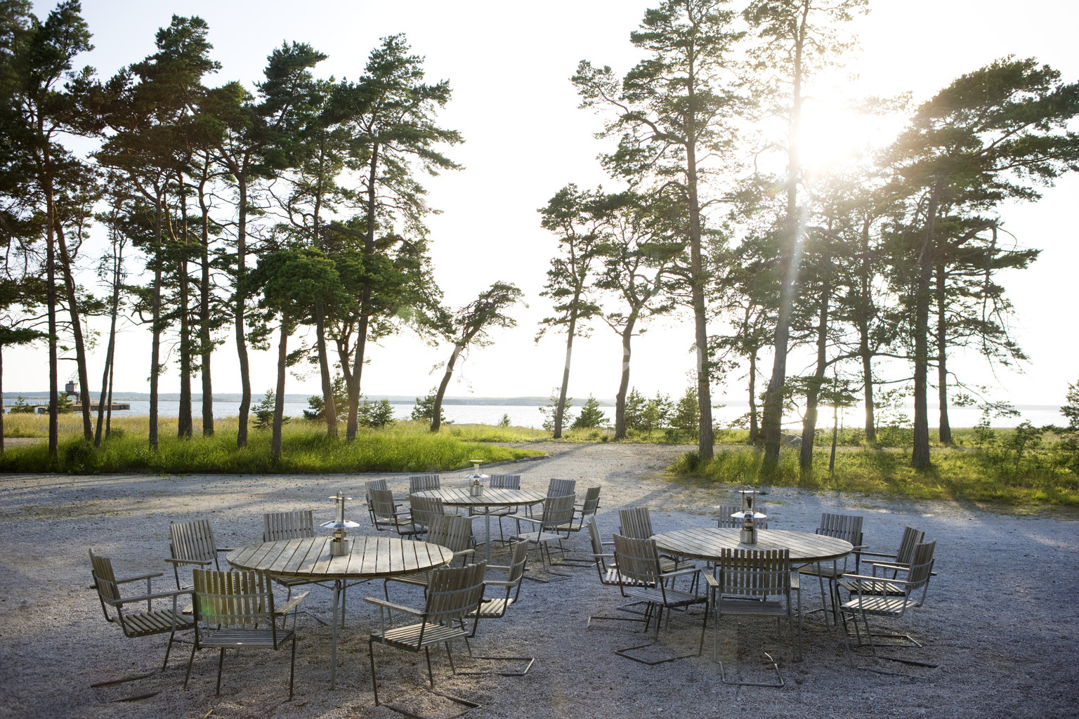 serving, evening, sun, pine, sea, chairs, blank, table, tree, cafe, restaurant, fate, backlight