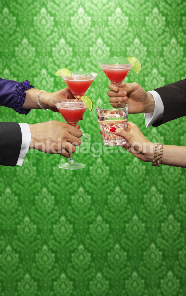 - green, wallpaper, pattern, hands, bracelets, nail polish, red, drink, party, nightclubs, alcohol, social, several