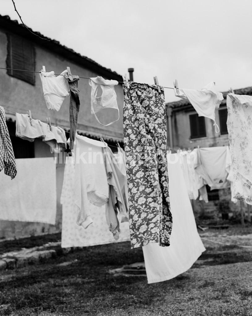- clothes, clothesline, on, drying, washing line, rural, floral, fabric, sheets, shirt, underwear, courtyard