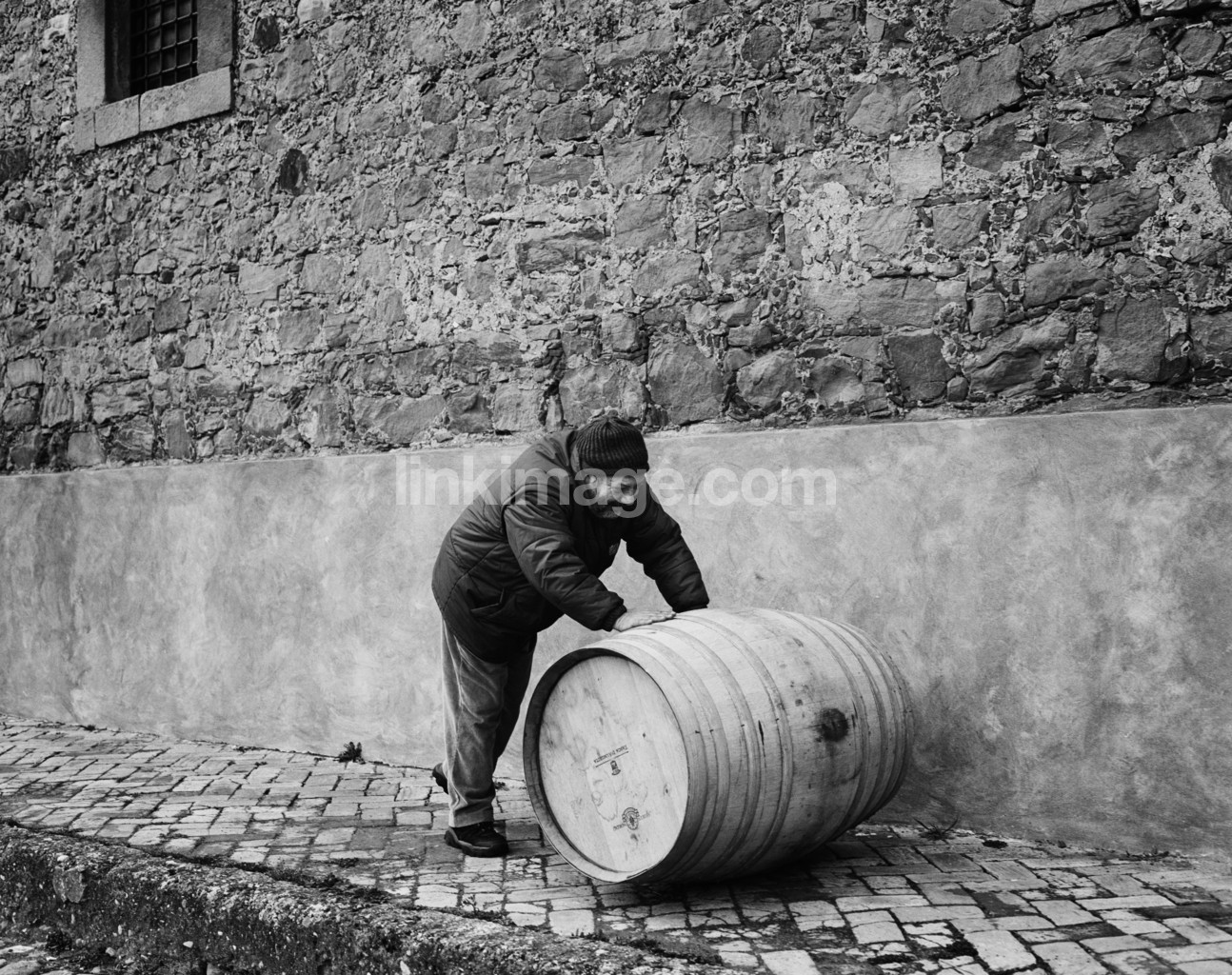 - male, work, cap, autumn dressed, roll, thin, wine barrel, stone, concrete, old, heavy, weight