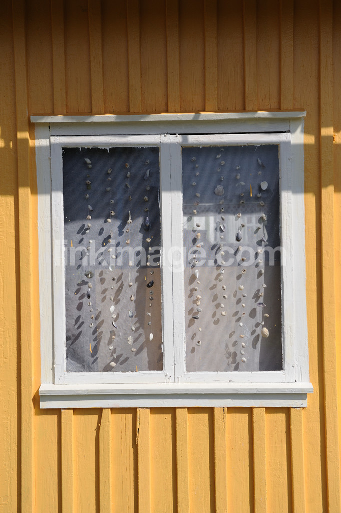 - window, wooden house, yellow, villa, decoration, ornament, shells, drop-down