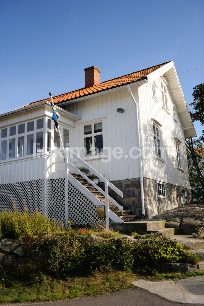 - villa, house, summerhouse, flag, archipelago, porch, staircase, garden, front