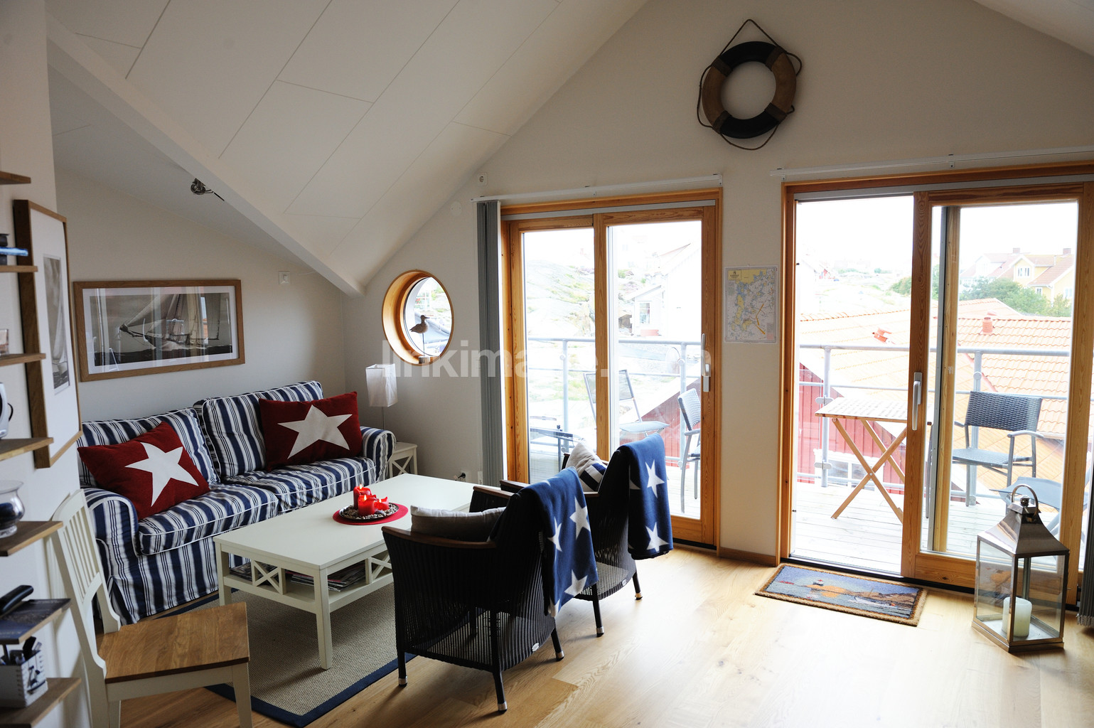 - cottage, villa, house, living, livingroom, porch, balcony, glass doors, marine, archipelago, sofa, chairs, armchairs, pads, coffee table, lamp, hardwood floors, parquet, new building, lifebuoy, blanket, blankets, interior, tasteful, theme