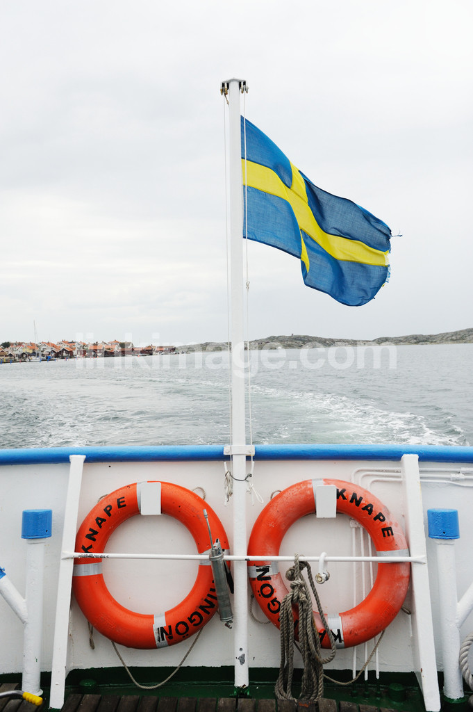 - archipelago, coast, flag, wind, backwash, lifebuoy, lifebuoys, orange, two, 2, bar table, view, horizon, island, cottages, house, sea, rocks, railing, tampering, rescue