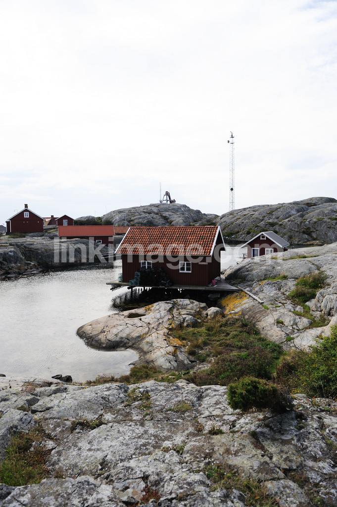 - cottage, cottages, boathouse, house, bod, sheds, red, port, bridge, deck, fishing gear, network, bay, rocks, cut, sea, archipelago, mast, radio tower