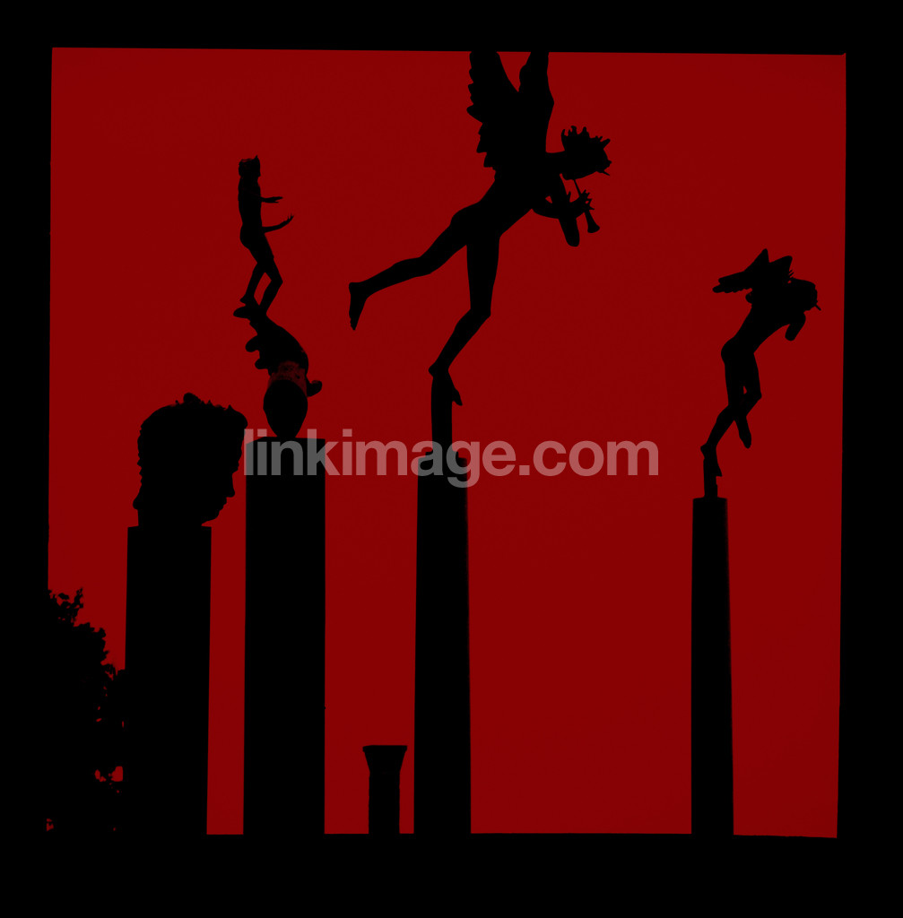 - sculpture, mille yard, red, black, angels, angel, music, columns, wine, silhouette