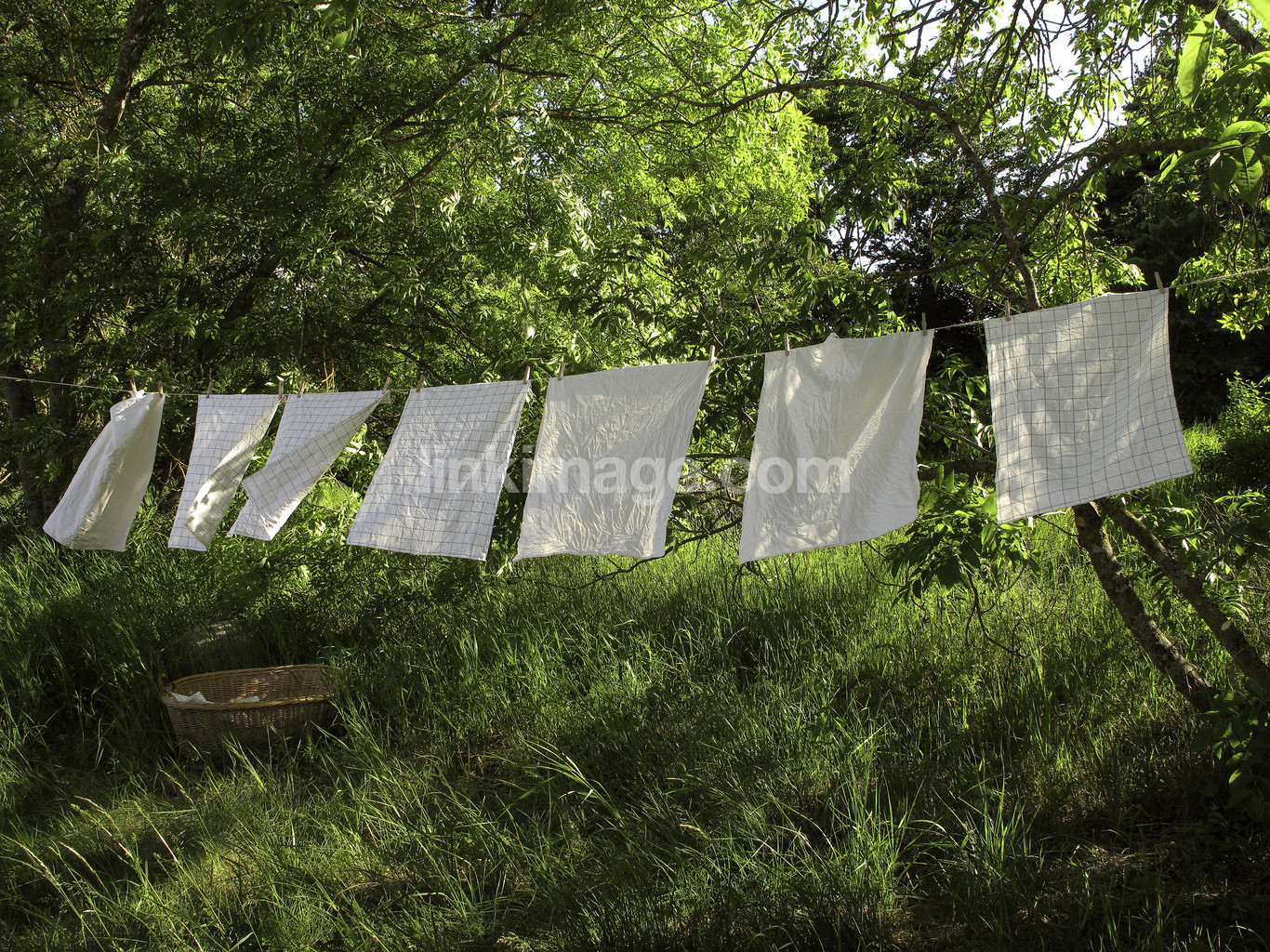 - wash, washing line, dry, summer, garden, tree, greens, towels, laundry basket, light