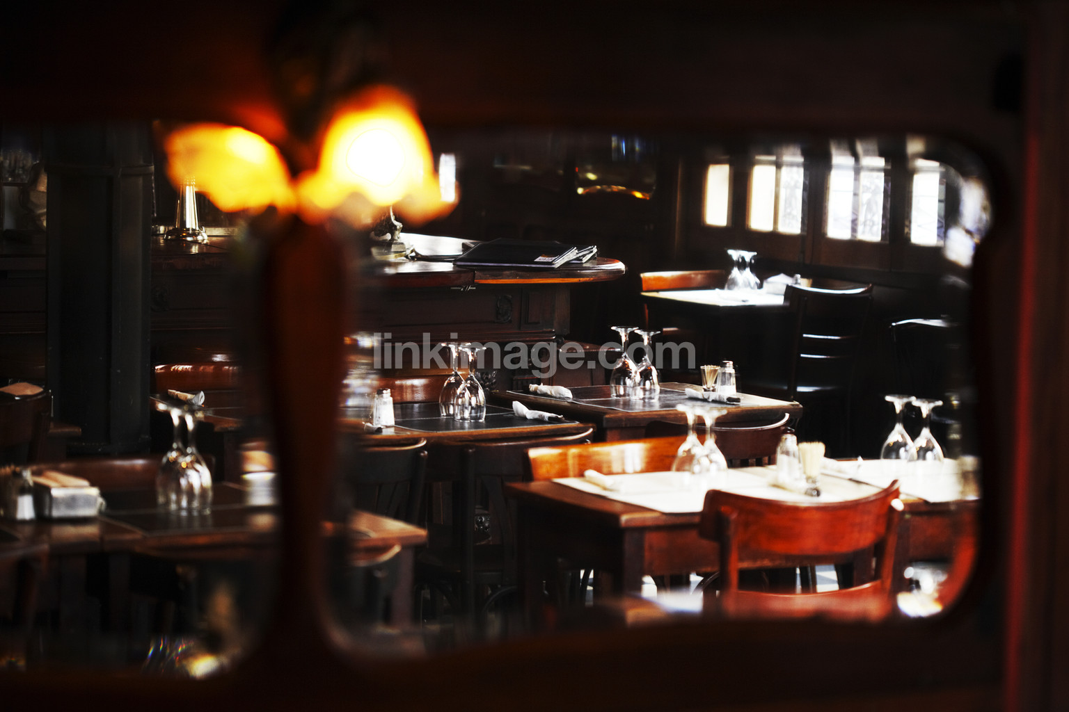 - cafe, mirror, glass, table, chairs, restaurant, evening, wineglass