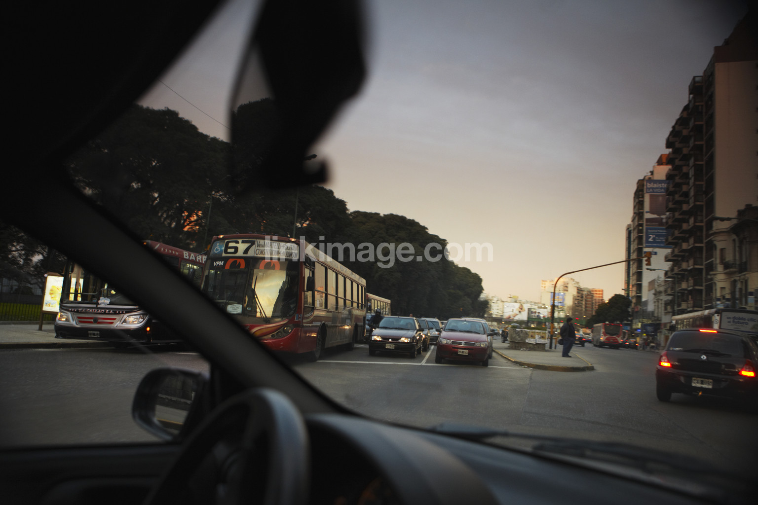 - city, pedestrian crossing, bus, cars, house, people, movement, evening, car, vehicle, traffic, road, street, public transport