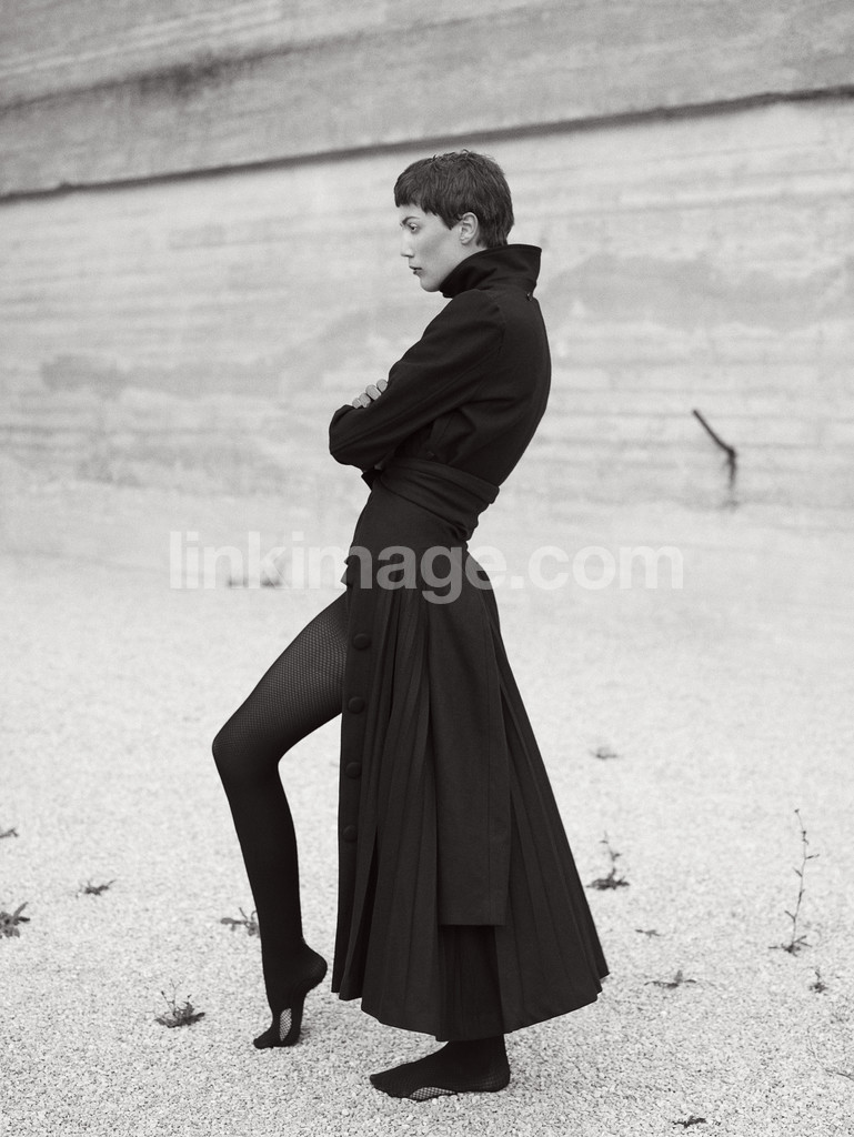 - female, clothes, black, fashion, concrete, profile, bone, jacket, shore